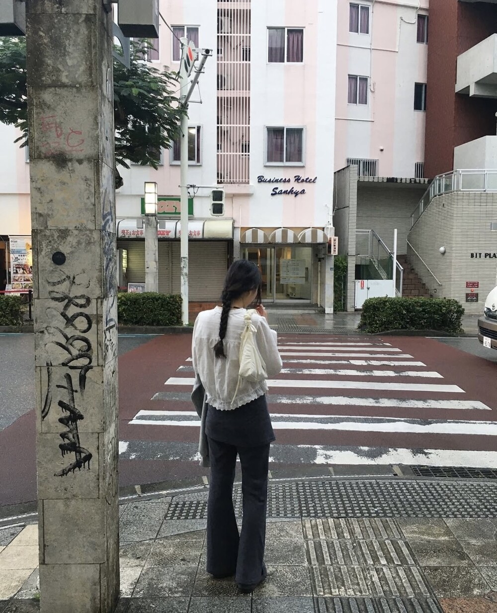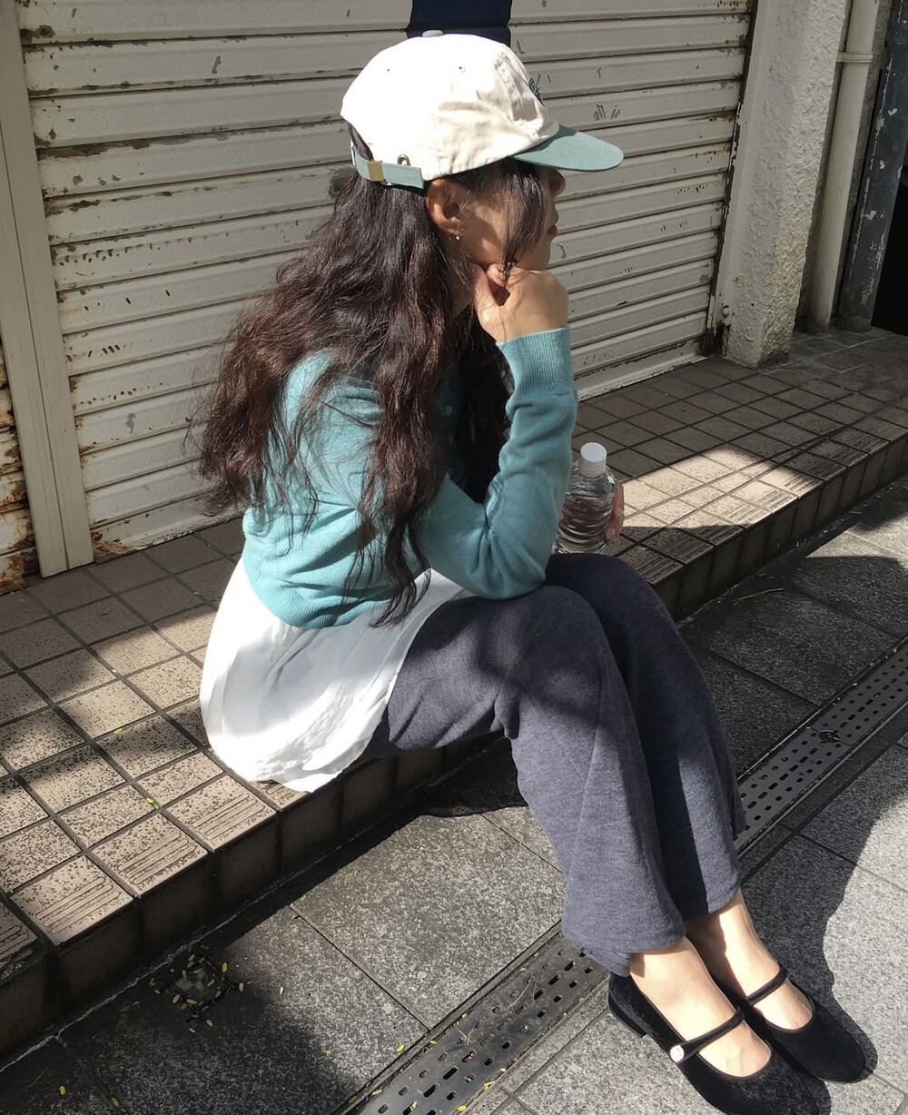바지 밑단이 신발등을 덮어 드랍되는 핏으로 착용시 멋스러움이 느껴진답니다.