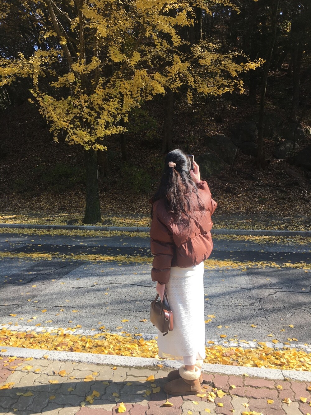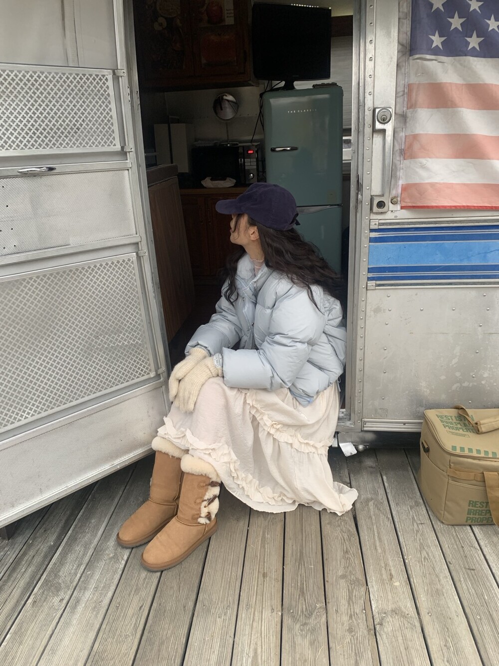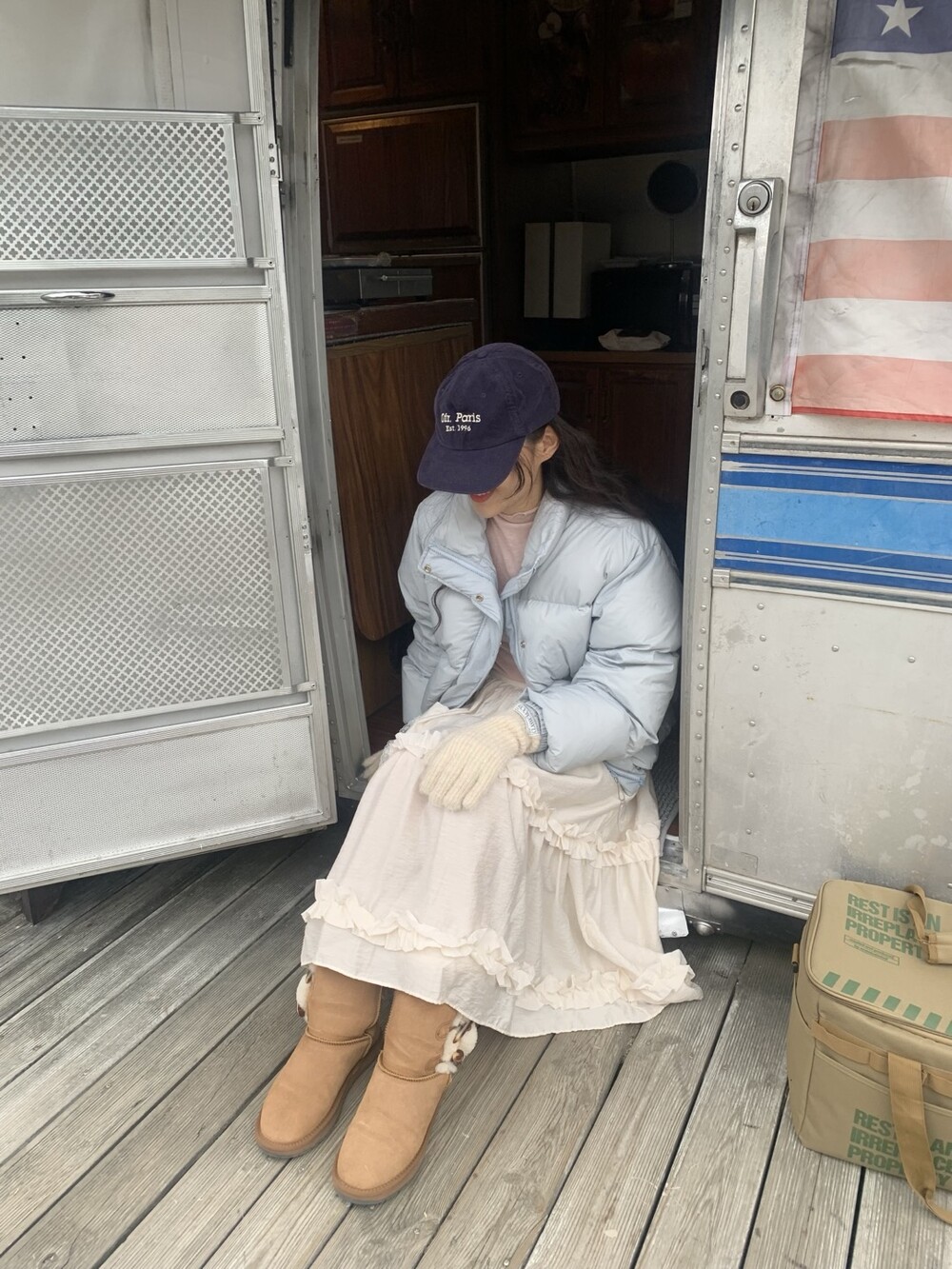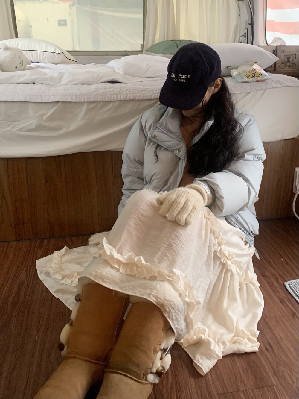 기장감도 너무 숏하지 않은 편이고, 허리 스트링을 조이면 더욱 아방해져서 귀여운 실루엣이 완성된답니다 ^^
