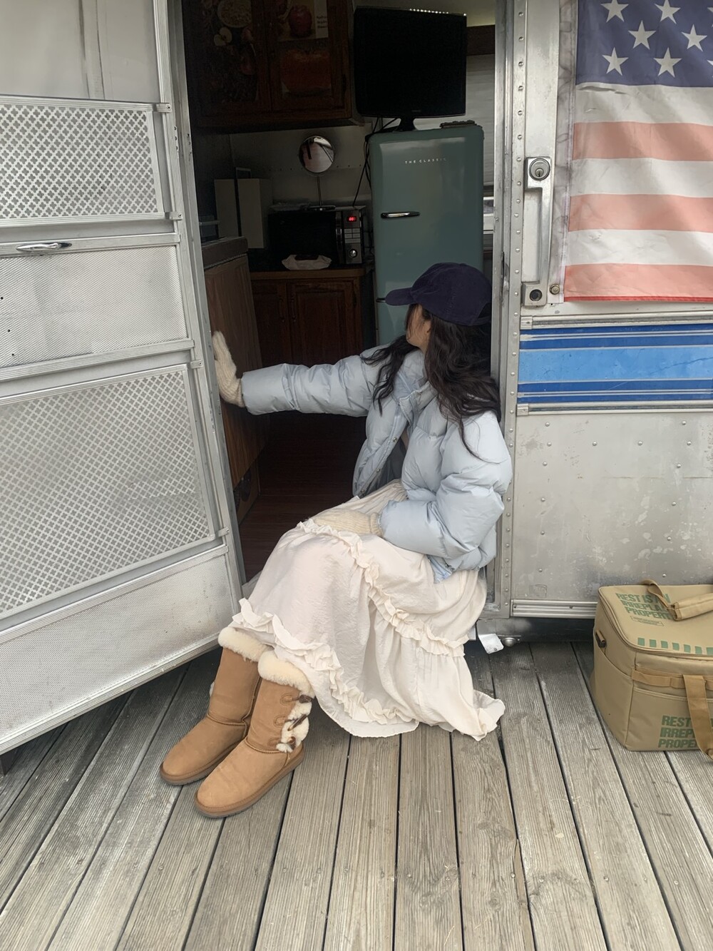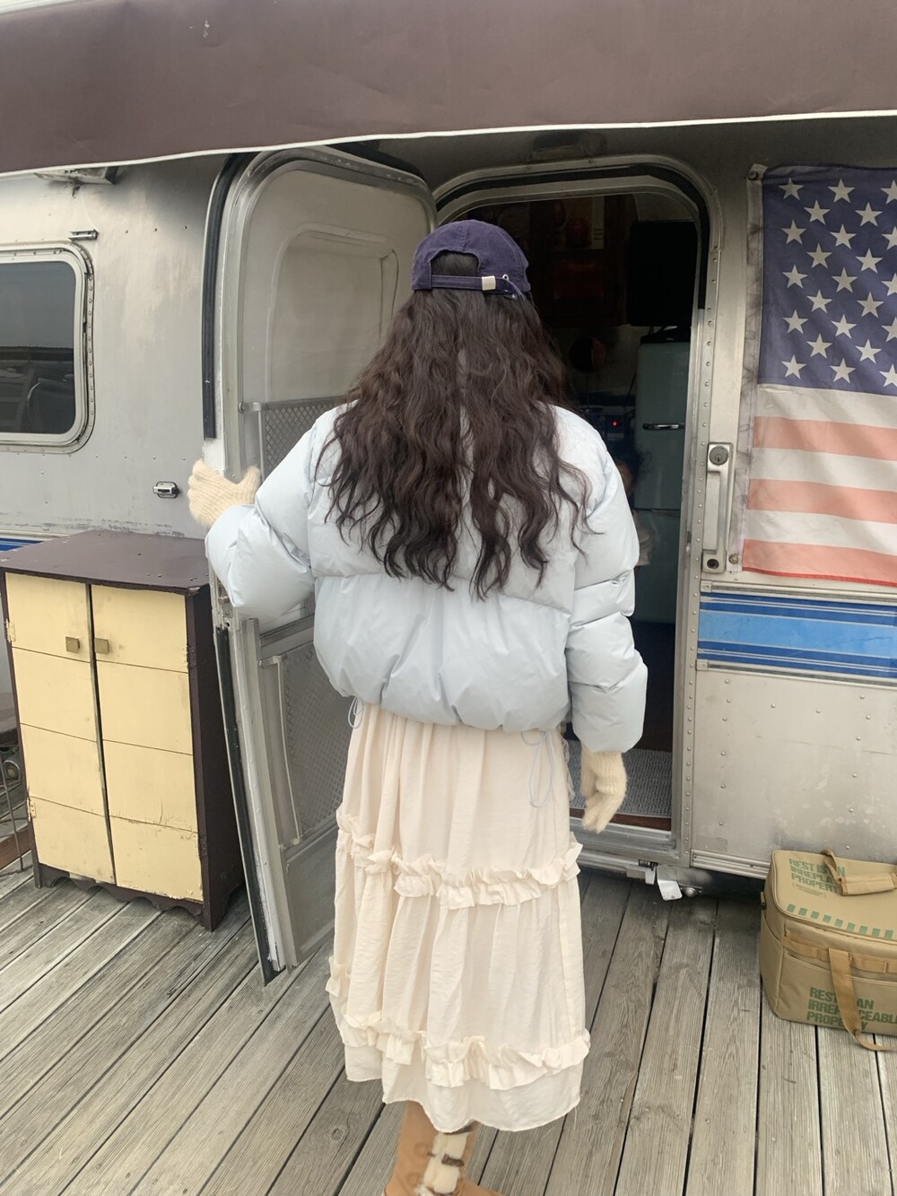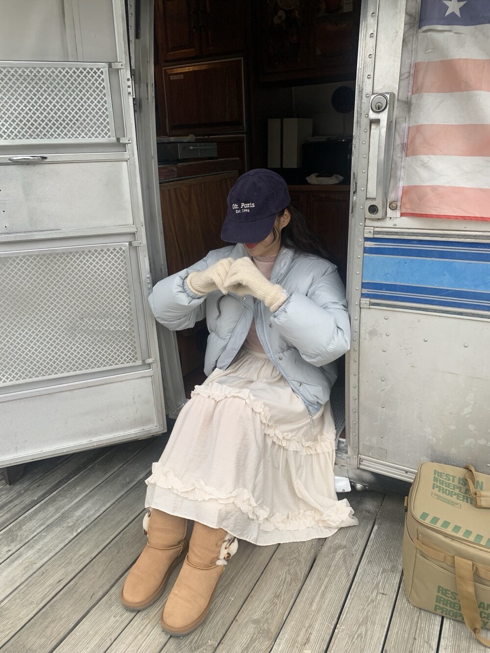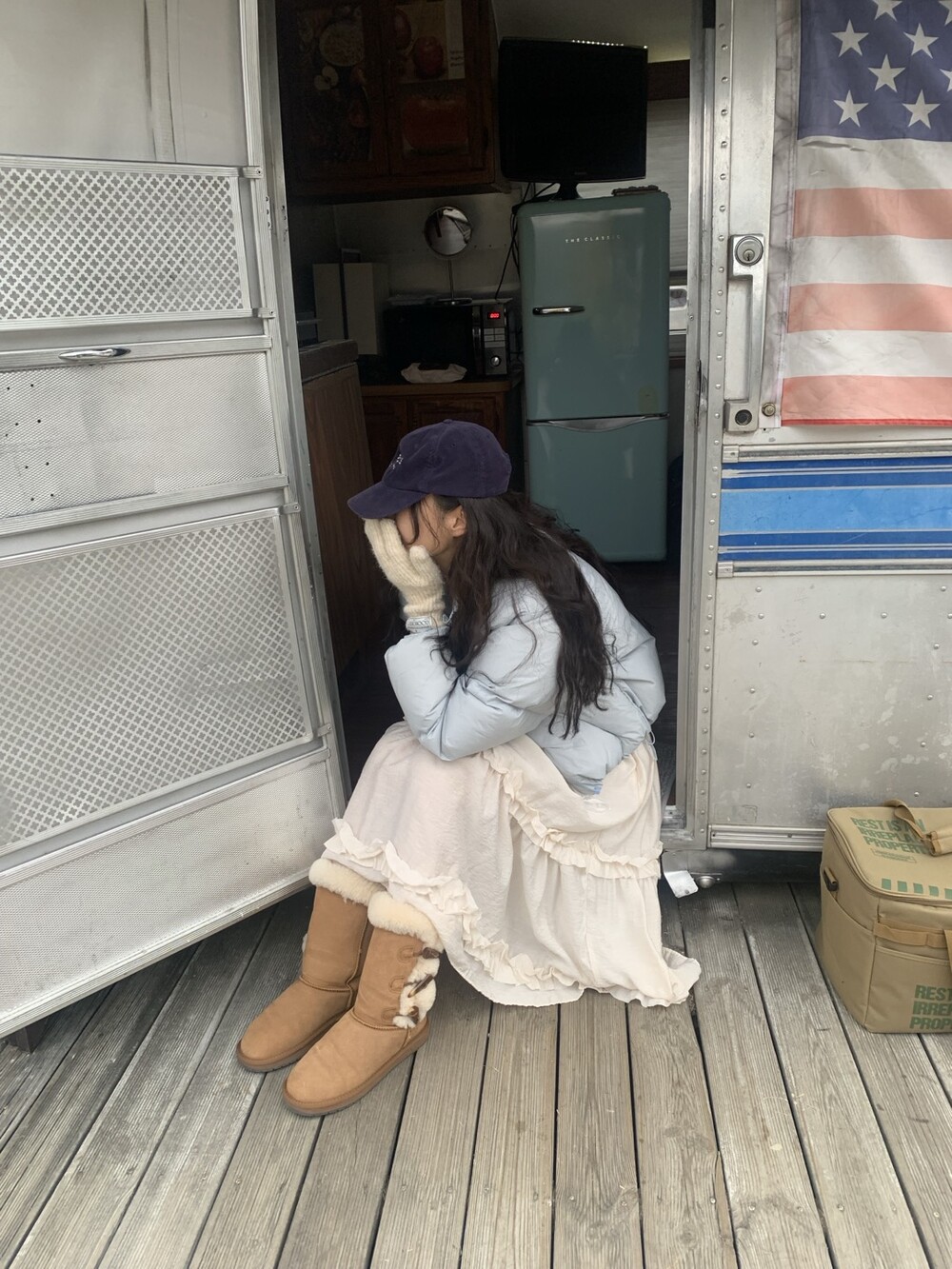 기장감도 너무 숏하지 않은 편이고, 허리 스트링을 조이면 더욱 아방해져서 귀여운 실루엣이 완성된답니다 ^^