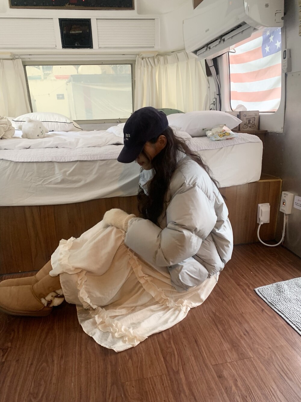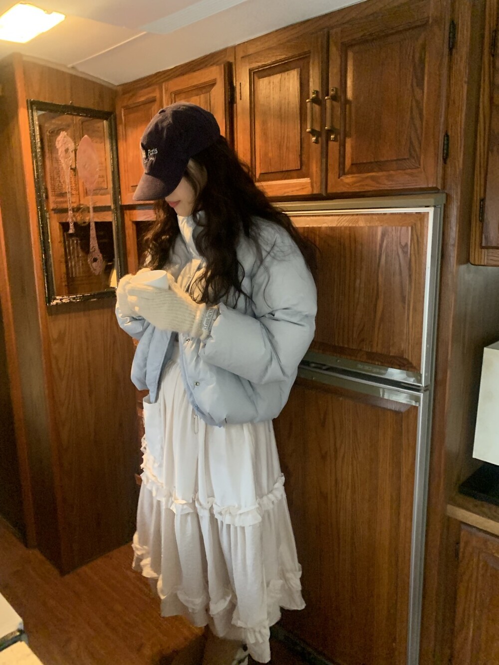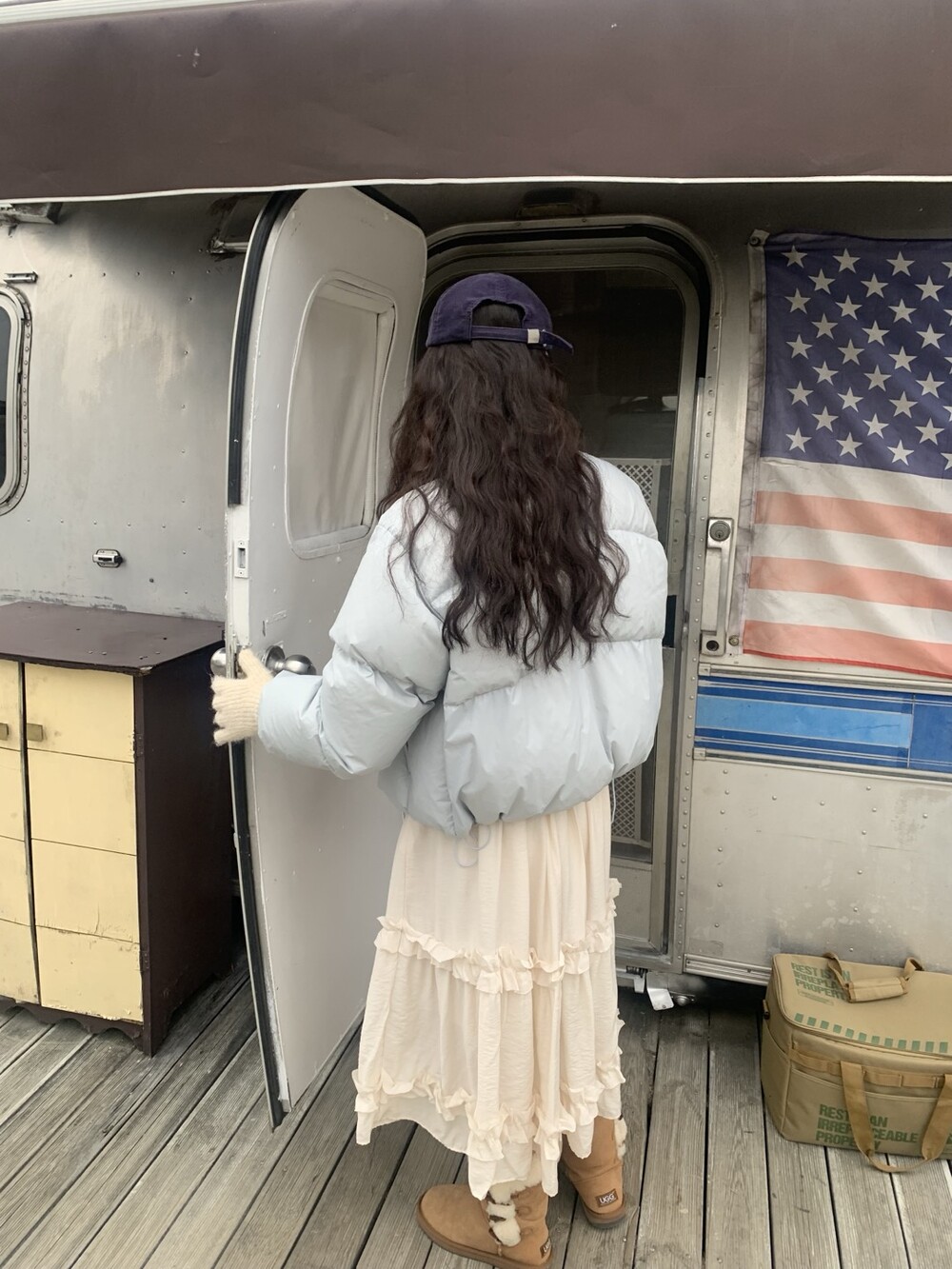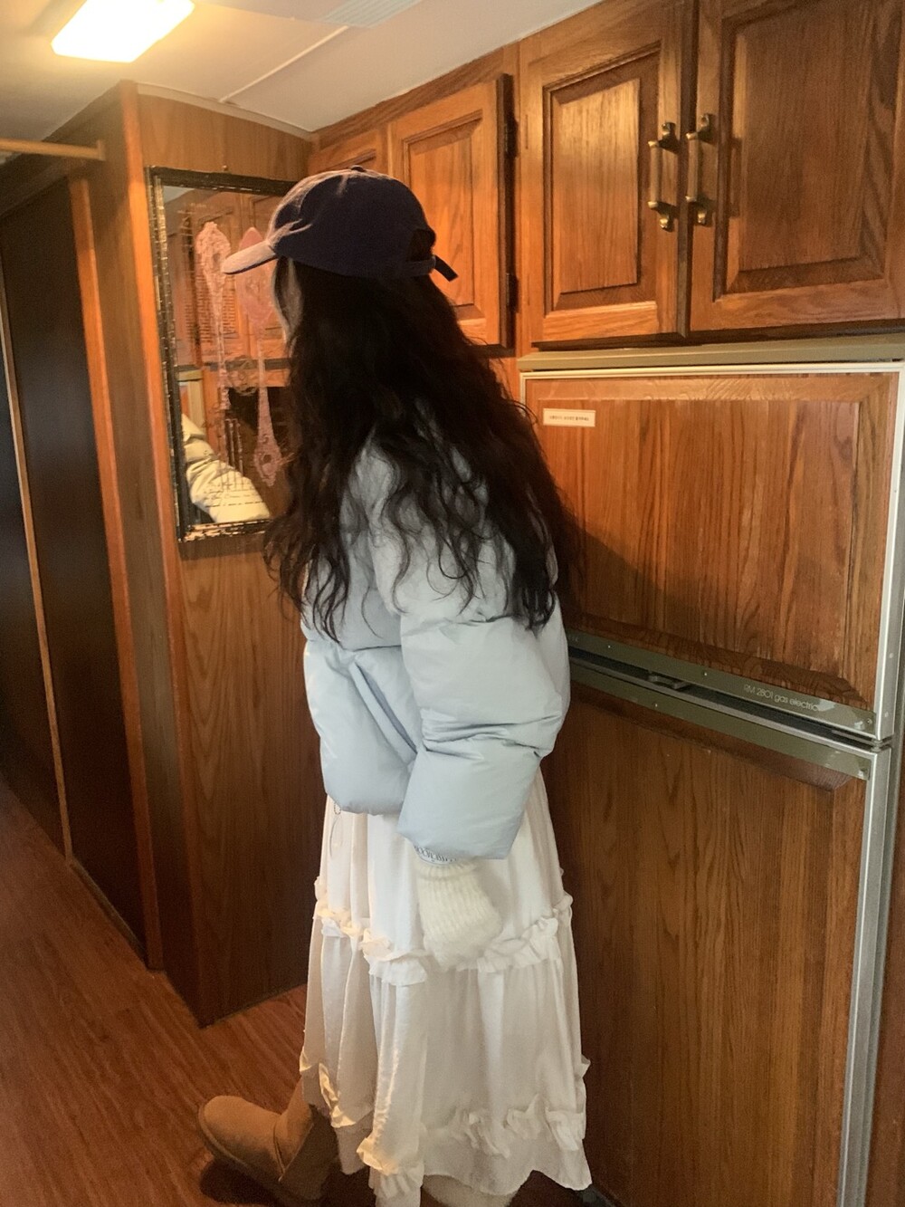 기장감도 너무 숏하지 않은 편이고, 허리 스트링을 조이면 더욱 아방해져서 귀여운 실루엣이 완성된답니다 ^^
