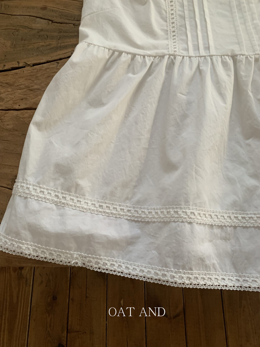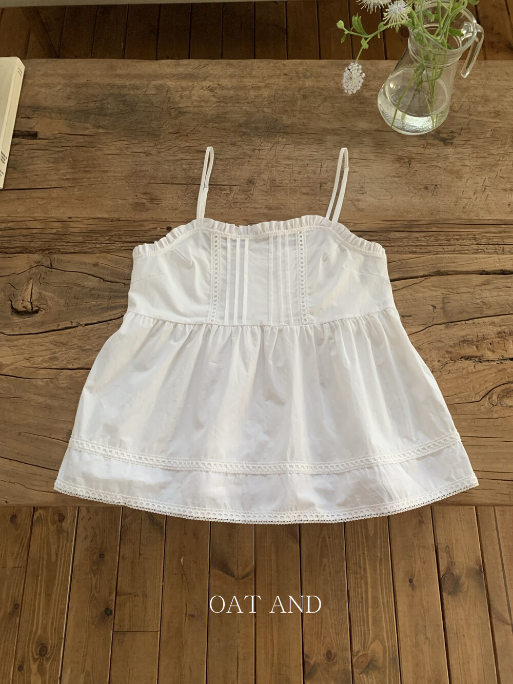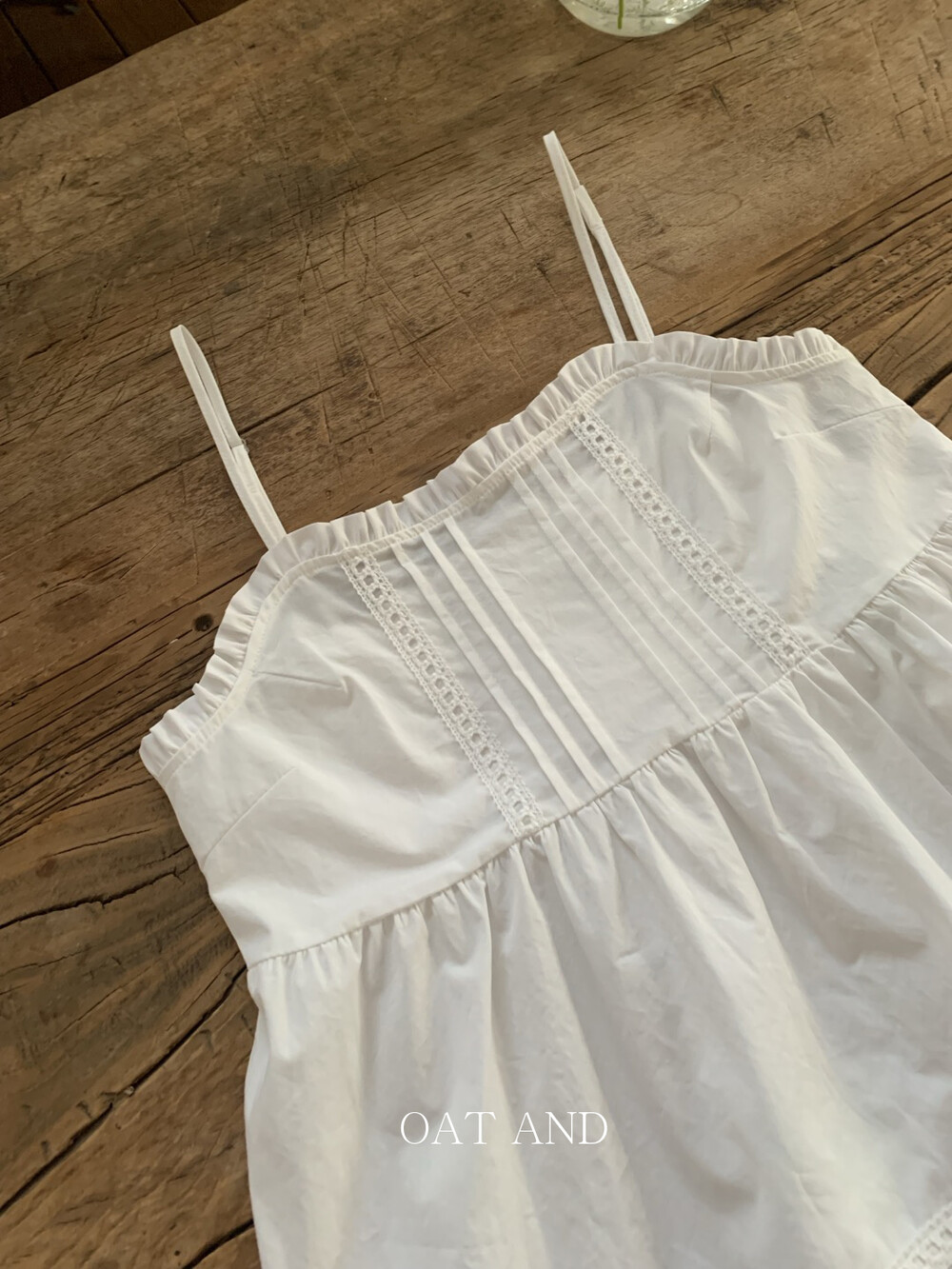 스퀘어 네크라인에 핀탁 디테일과 세로 핀탁과 레이스 디테일이 더해져 너무 사랑스러워요