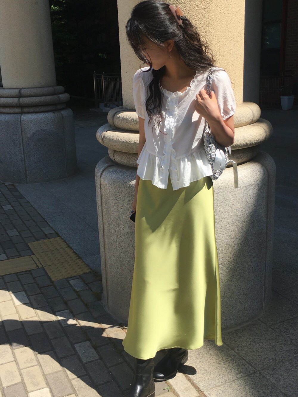 샤틴 소재 특성상 바디라인의 굴곡이 드러나는 편인데,