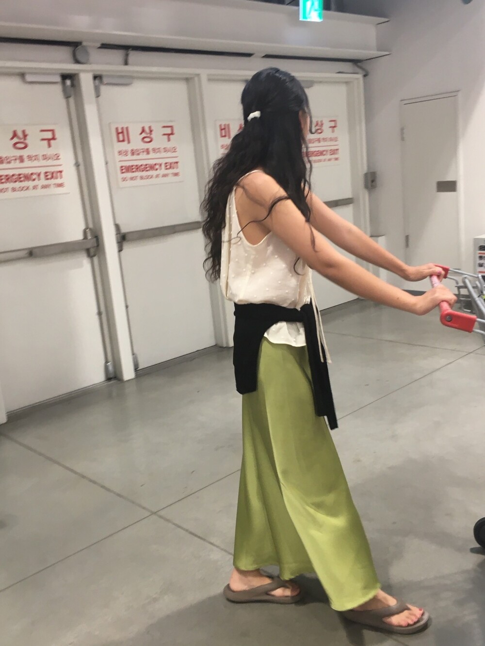 샤틴 소재 특성상 바디라인의 굴곡이 드러나는 편인데,
