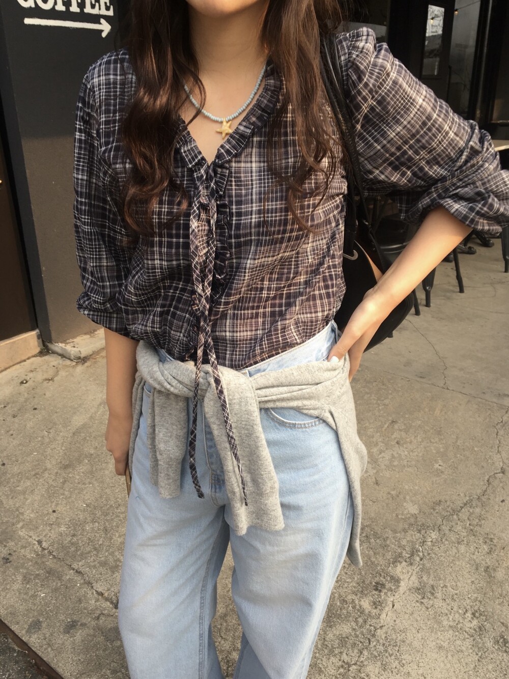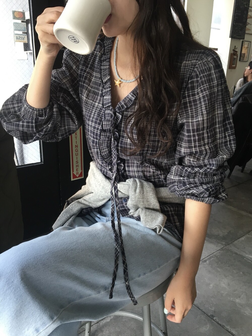 로코 프릴 블라우스가 체크 버전으로 소개드릴게요 :)