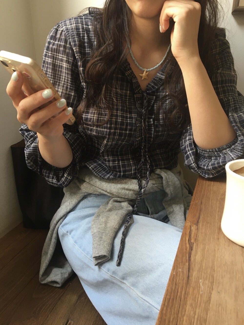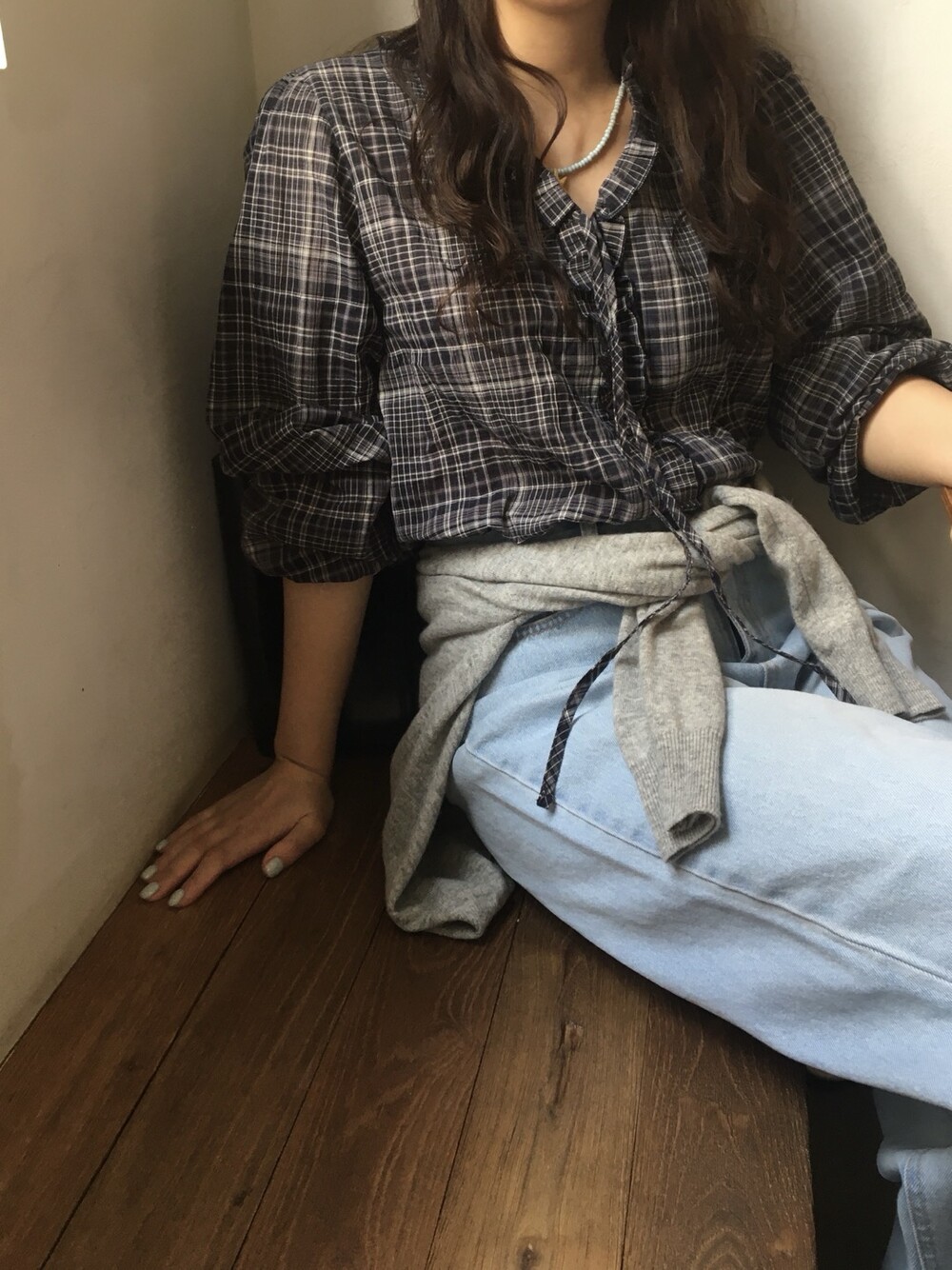 은은한 체크 패턴 위에 프릴과 리본 디테일이 더해져 꾸민 듯 안 꾸민 듯 자연스럽게 예쁜 블라우스입니다.