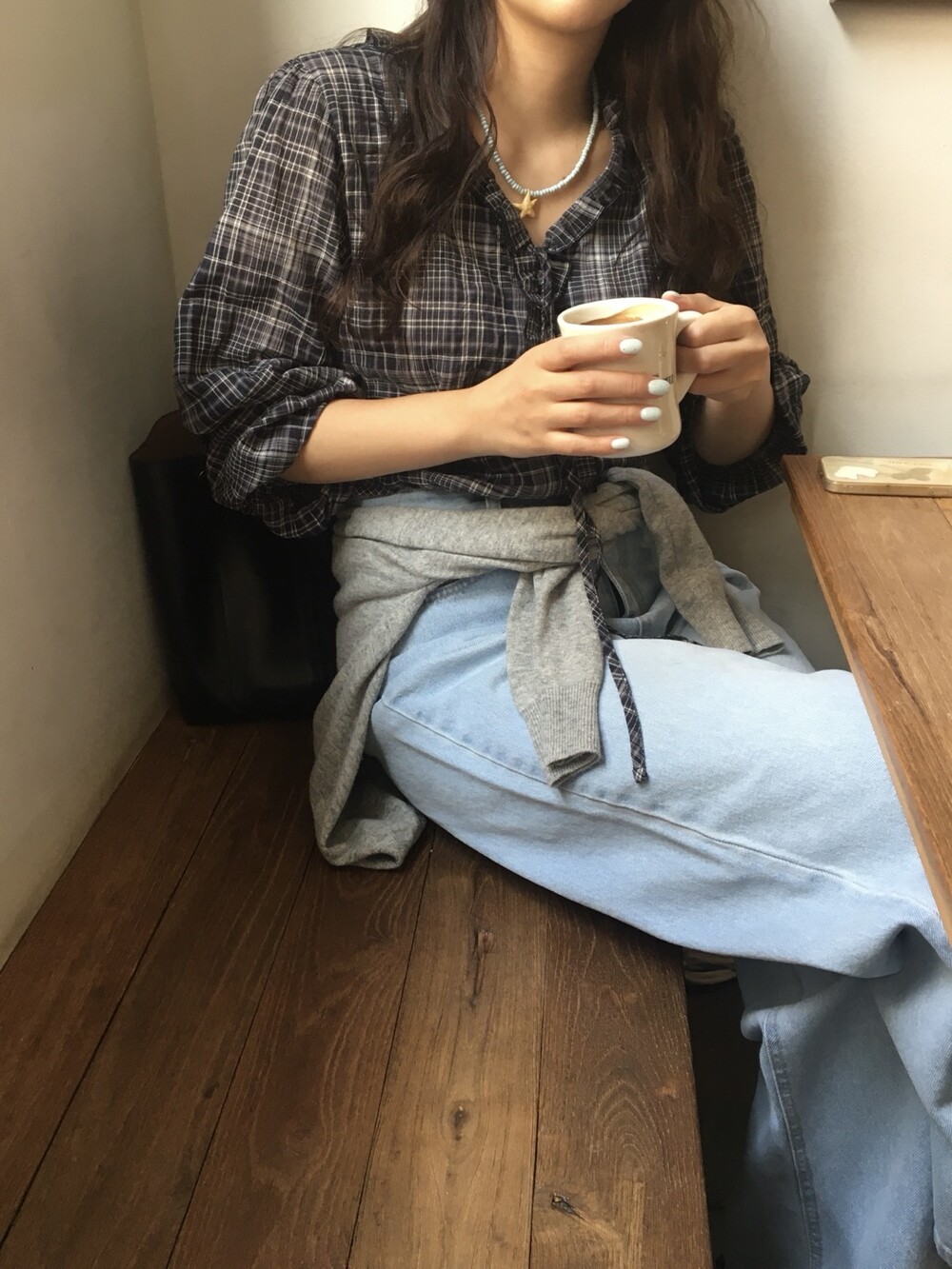 네추럴한 체크 패턴이 과하지 않은 잔체크로 어떤 하의와도 부담 없이 매치 가능하구요!