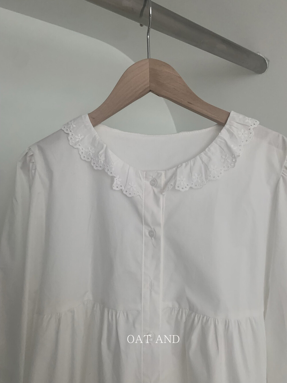 넥라인을 따라 둥그런 레이스 디테일이 너무 사랑스럽지요 ?