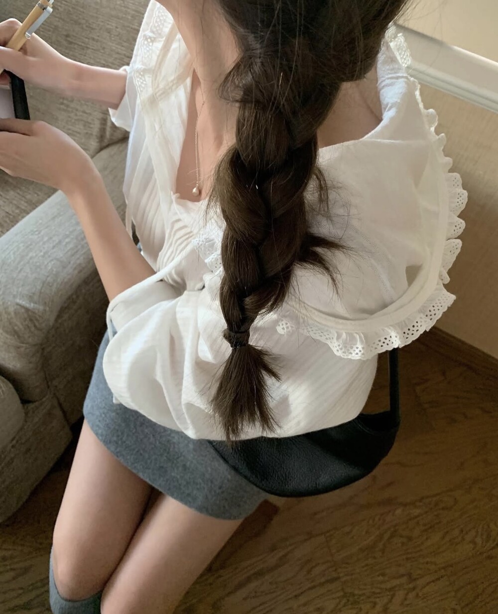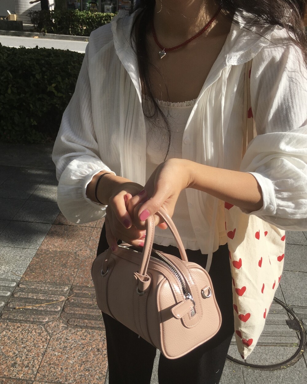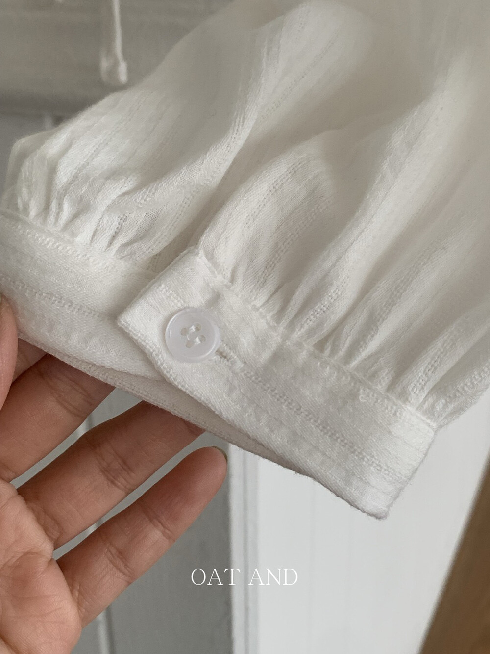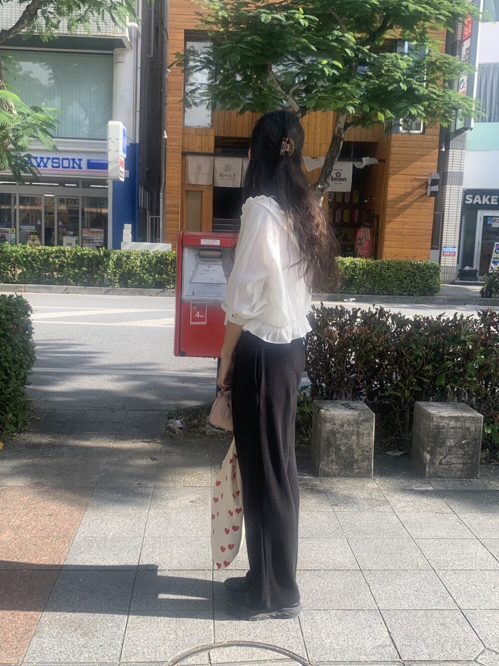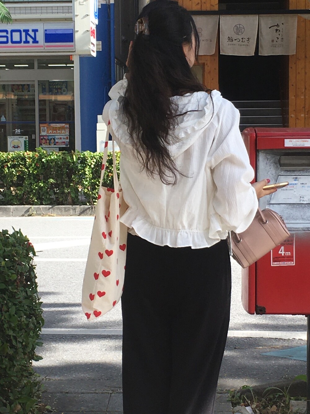 핀턱디테일과 더불어 밑단에 프릴 디테일이 들어가서 러블리한 무드가 돋보인답니다.