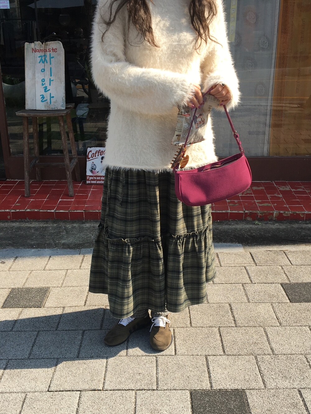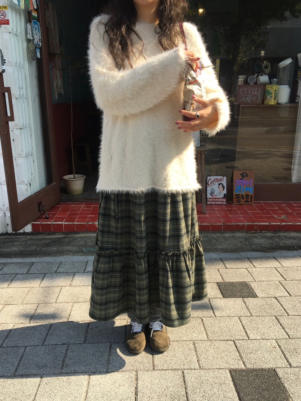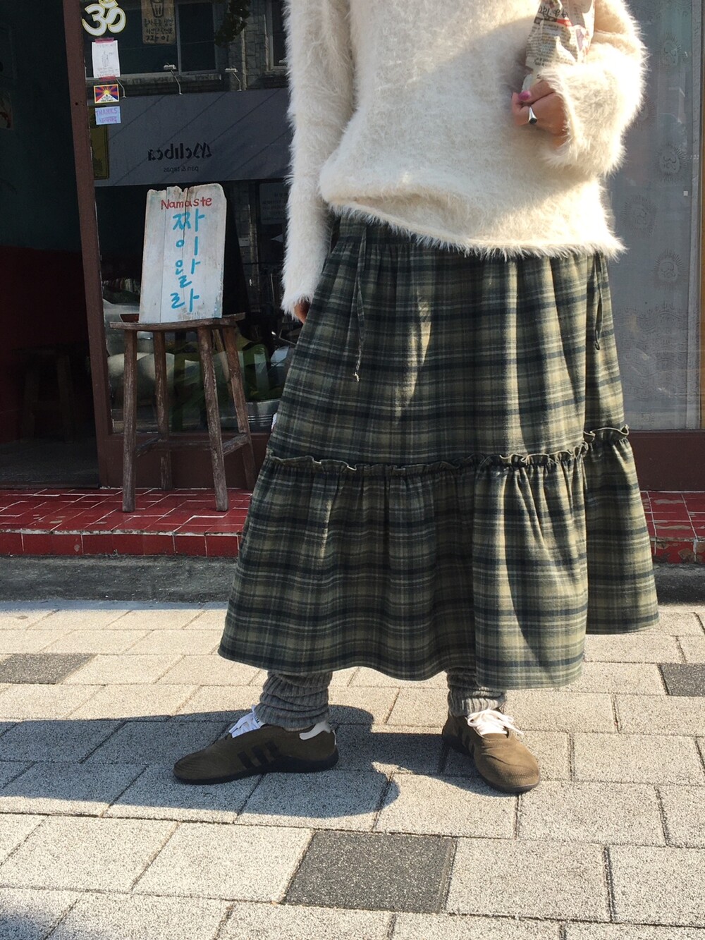 빈티지 체크 컬러감 덕분에, 니트나 후드, 자켓 등 어떤 상의와도 쉽게 매치됩니다.