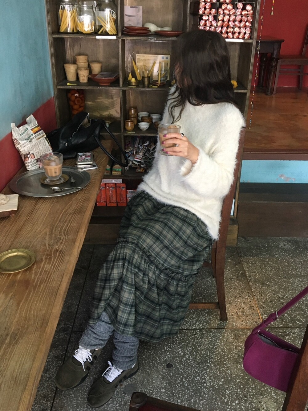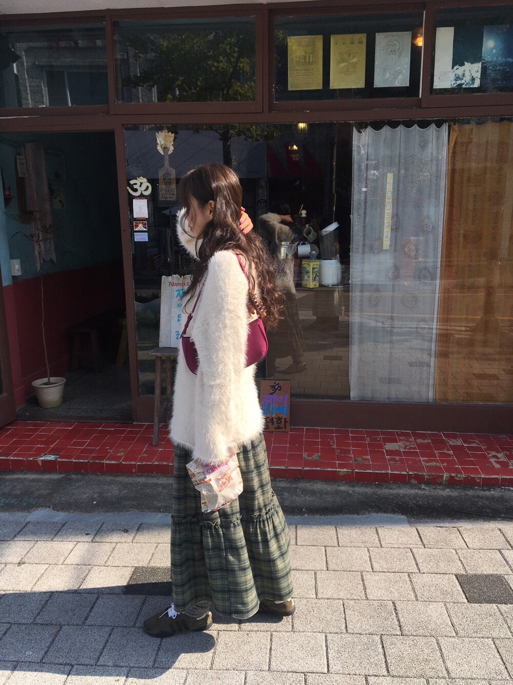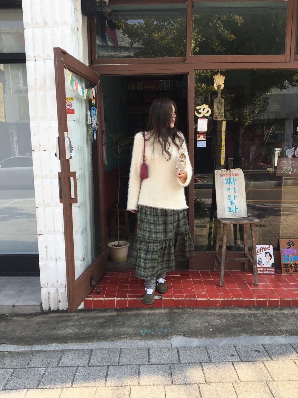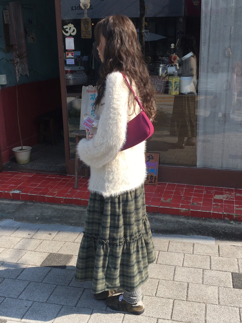 빈티지 체크 컬러감 덕분에, 니트나 후드, 자켓 등 어떤 상의와도 쉽게 매치됩니다.
