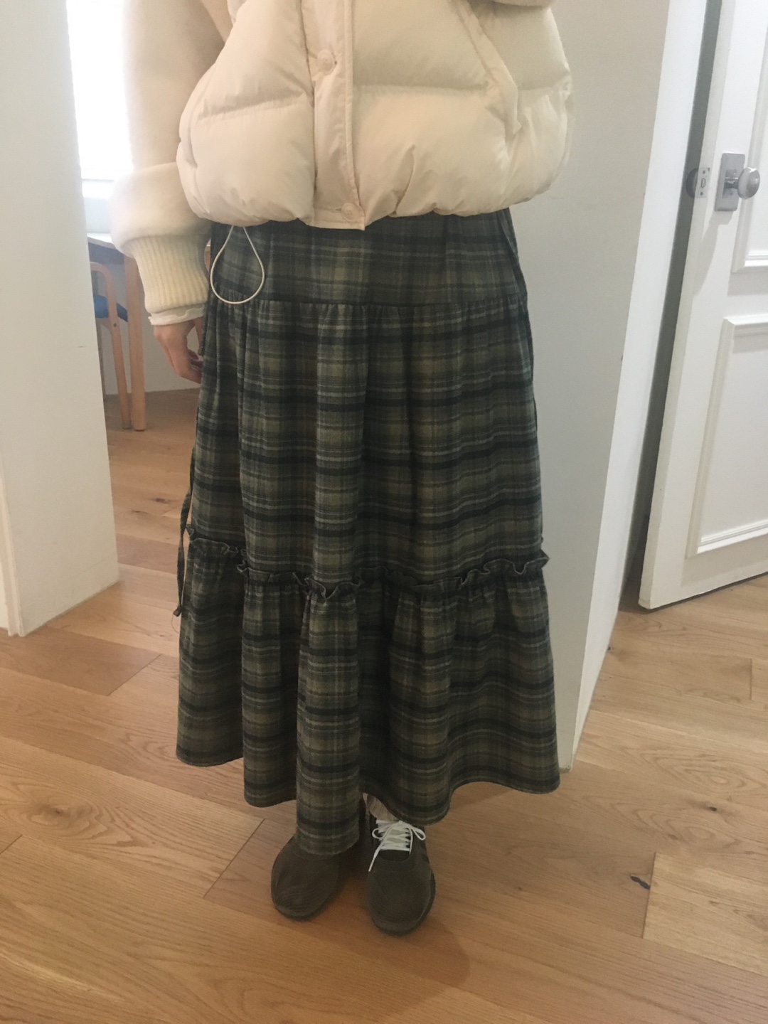 감성적인 체크 패턴으로 포근한 분위기를 연출해주는 캉캉 롱스커트입니다.