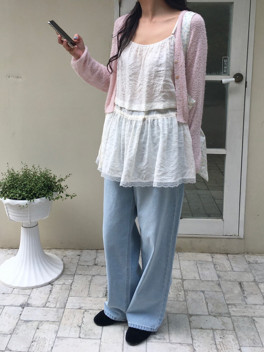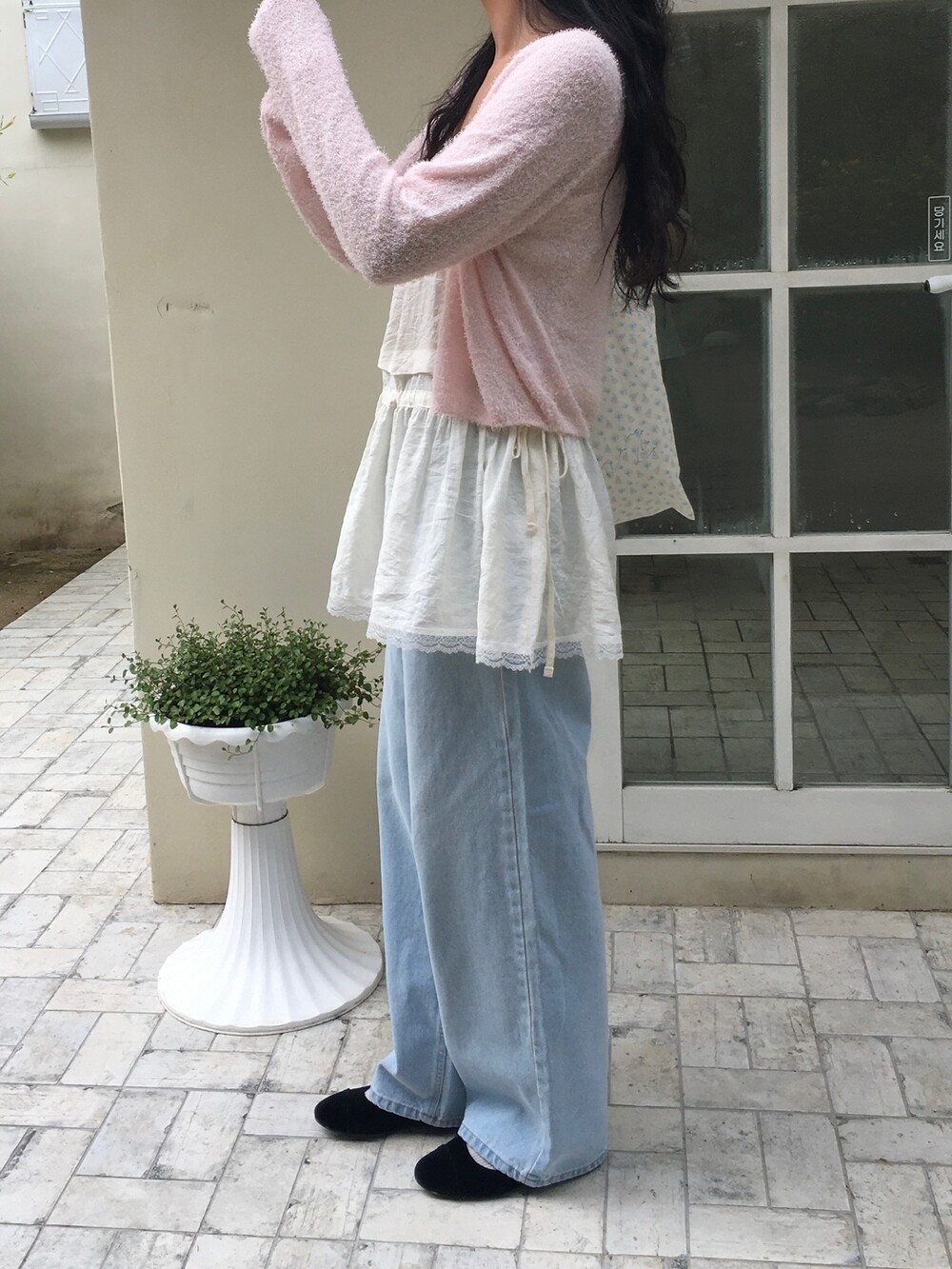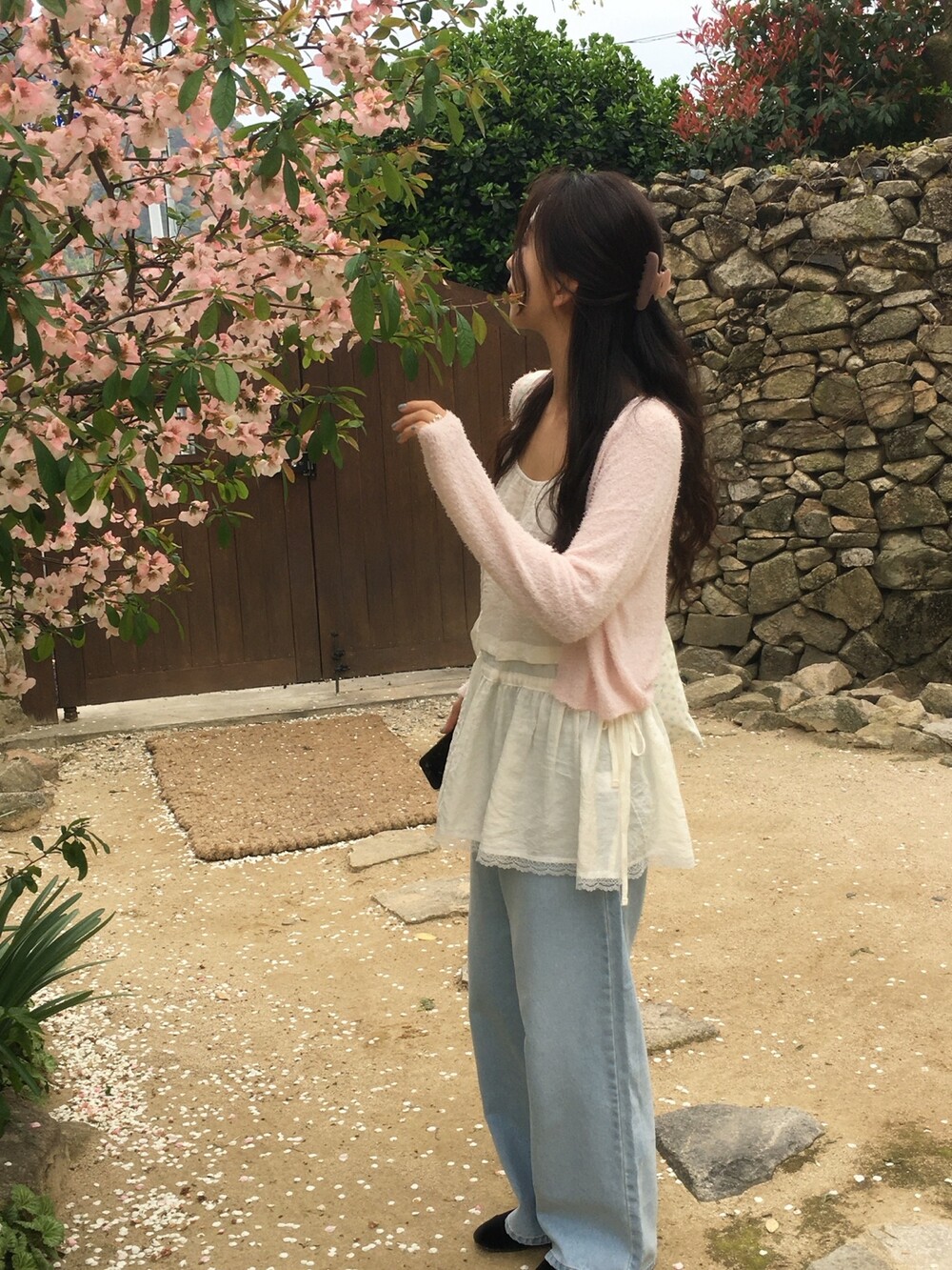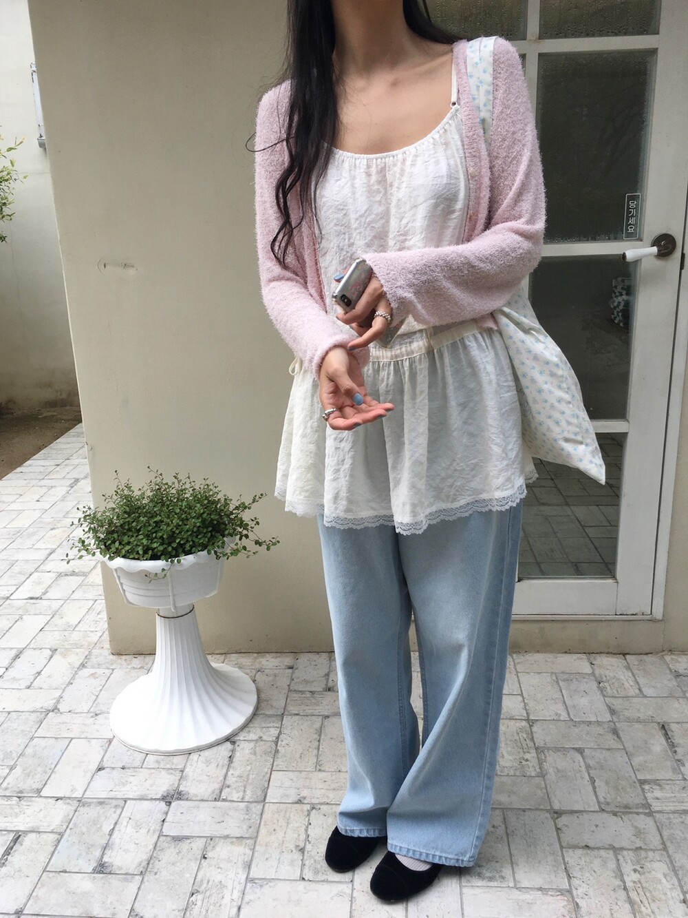 가볍게 걸치기만 해도 여리여리한 분위기를 완성해주는 아이템입니다. 어떤 룩에도 부드럽고 내추럴하게 어우러져 활용도가 높아요.브이넥 라인으로 목선을 길어 보이게 연출해주며, 프론트 버튼 디테일로 오픈/클로징에 따라 다양한 스타일링이 가능합니다. 바디를 따라 자연스럽게 흐르는 슬림한 핏감이 여성스러운 실루엣을 살려주고, 롱 슬리브 디자인이 더욱 여릿한 무드를 더해줍니다.