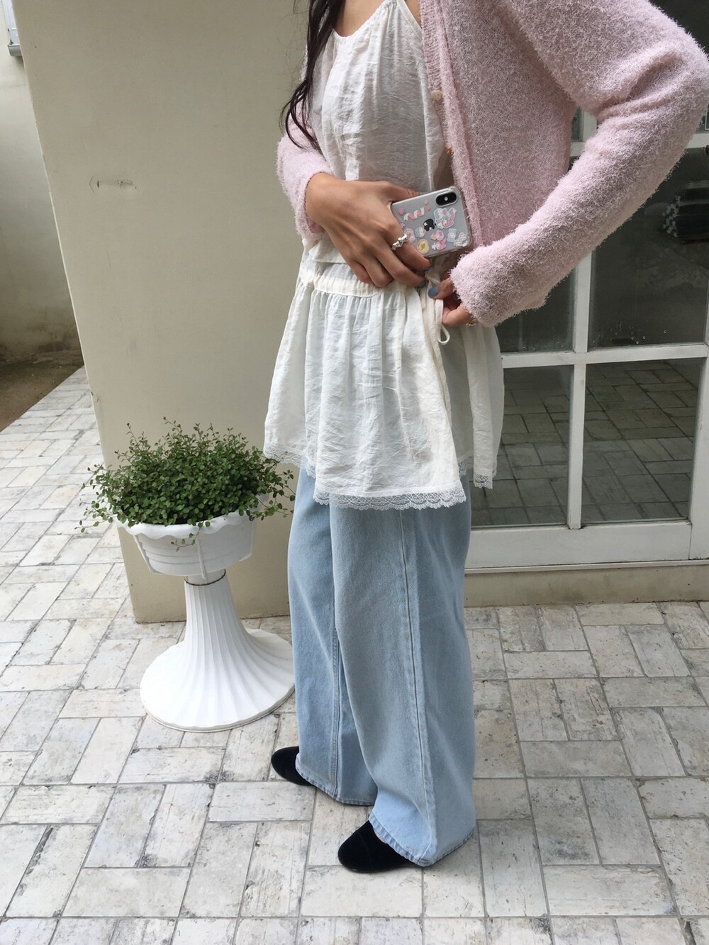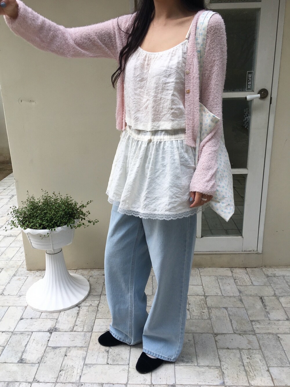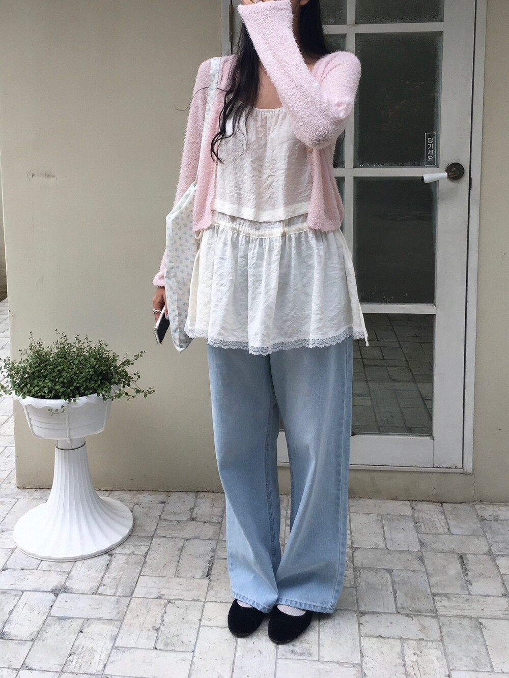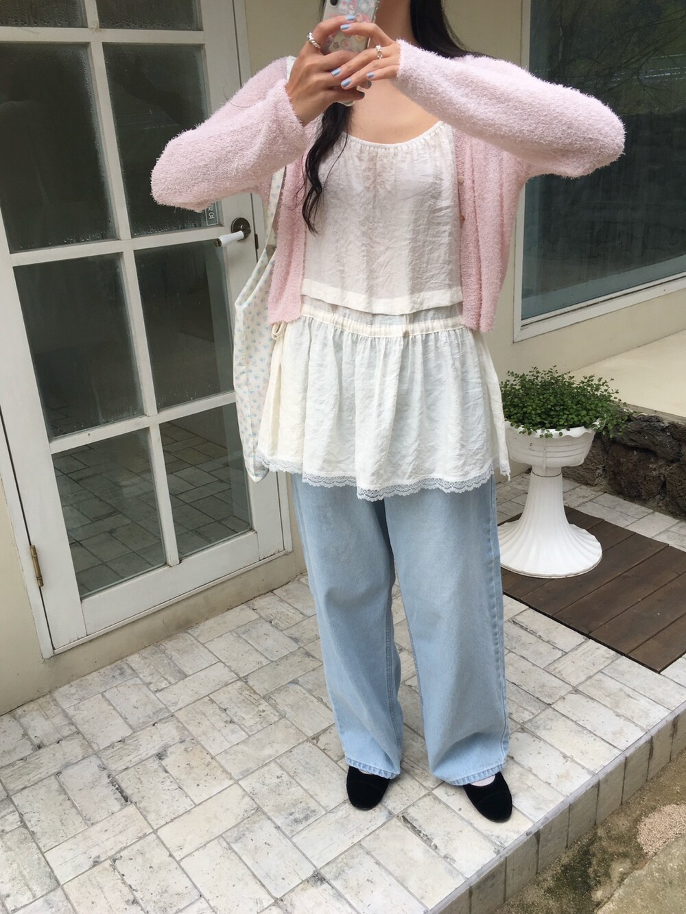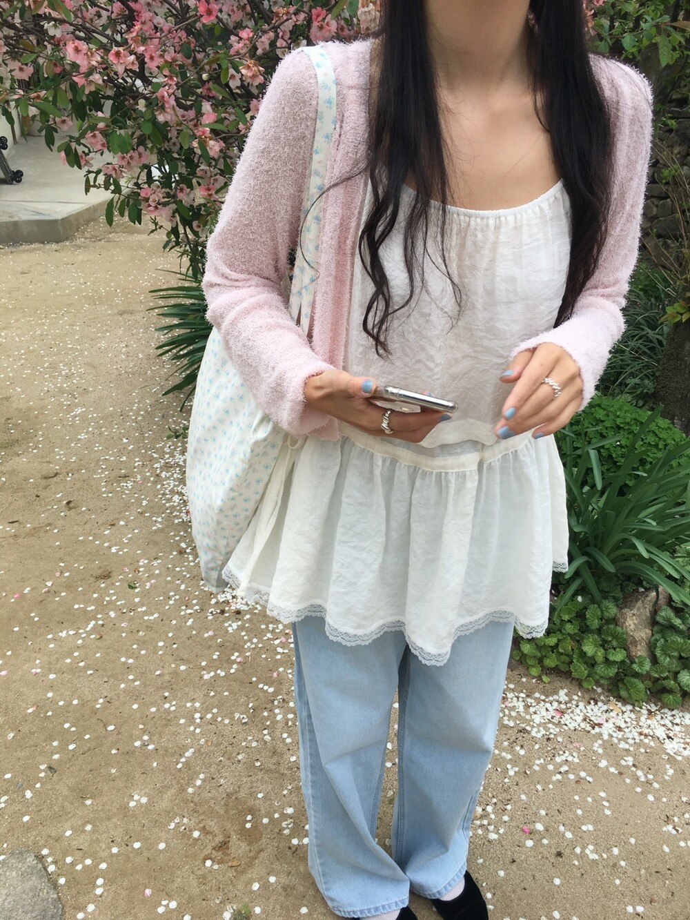 가볍게 걸치기만 해도 여리여리한 분위기를 완성해주는 아이템입니다. 어떤 룩에도 부드럽고 내추럴하게 어우러져 활용도가 높아요.브이넥 라인으로 목선을 길어 보이게 연출해주며, 프론트 버튼 디테일로 오픈/클로징에 따라 다양한 스타일링이 가능합니다. 바디를 따라 자연스럽게 흐르는 슬림한 핏감이 여성스러운 실루엣을 살려주고, 롱 슬리브 디자인이 더욱 여릿한 무드를 더해줍니다.
