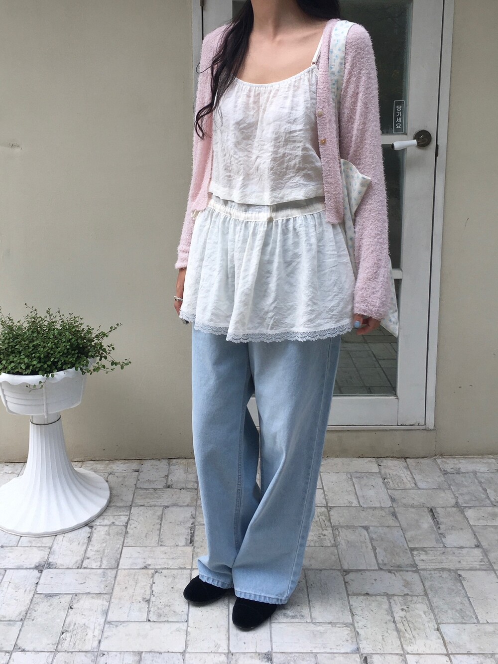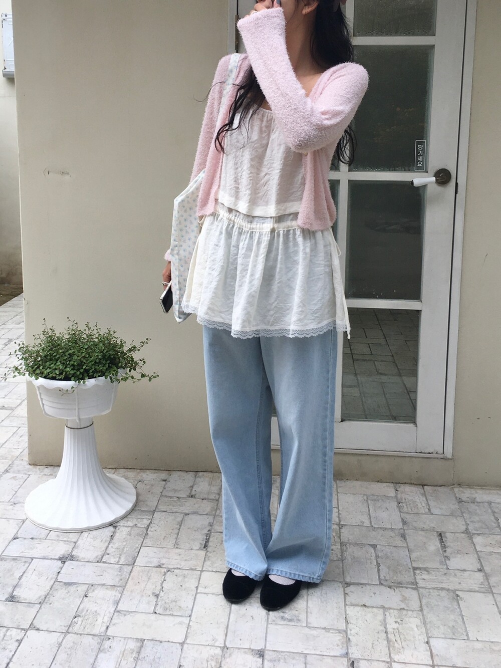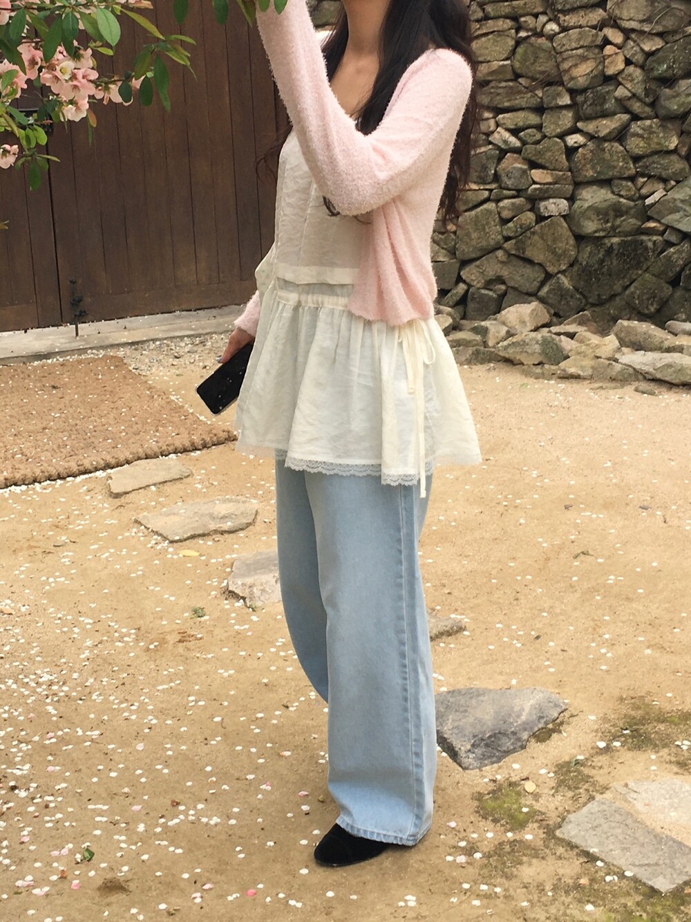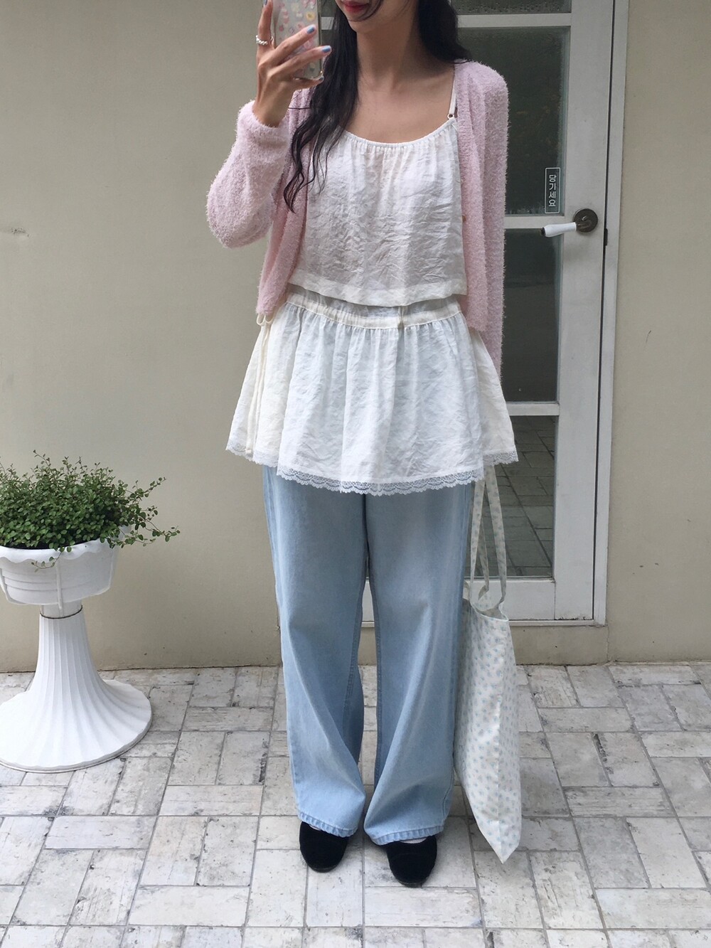 가볍게 걸치기만 해도 여리여리한 분위기를 완성해주는 아이템입니다. 어떤 룩에도 부드럽고 내추럴하게 어우러져 활용도가 높아요.브이넥 라인으로 목선을 길어 보이게 연출해주며, 프론트 버튼 디테일로 오픈/클로징에 따라 다양한 스타일링이 가능합니다. 바디를 따라 자연스럽게 흐르는 슬림한 핏감이 여성스러운 실루엣을 살려주고, 롱 슬리브 디자인이 더욱 여릿한 무드를 더해줍니다.