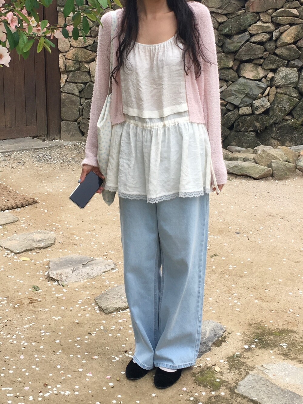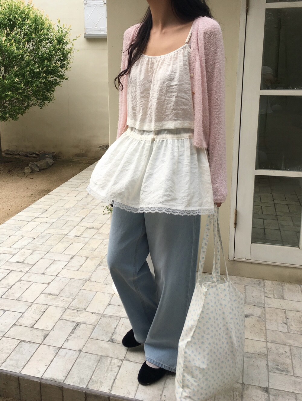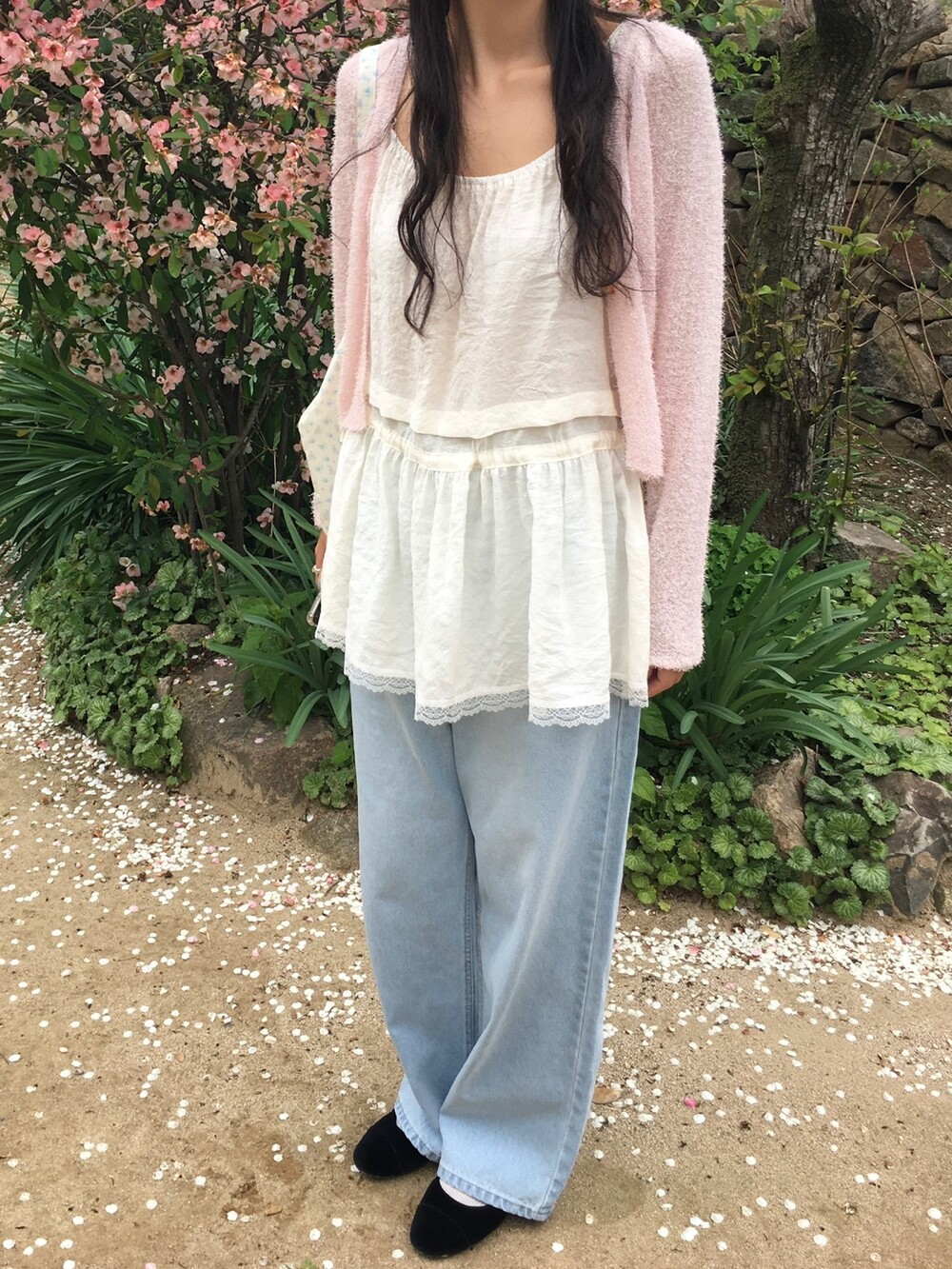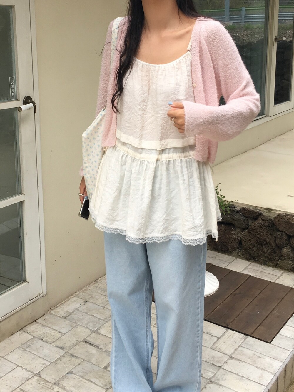 가볍게 걸치기만 해도 여리여리한 분위기를 완성해주는 아이템입니다. 어떤 룩에도 부드럽고 내추럴하게 어우러져 활용도가 높아요.브이넥 라인으로 목선을 길어 보이게 연출해주며, 프론트 버튼 디테일로 오픈/클로징에 따라 다양한 스타일링이 가능합니다. 바디를 따라 자연스럽게 흐르는 슬림한 핏감이 여성스러운 실루엣을 살려주고, 롱 슬리브 디자인이 더욱 여릿한 무드를 더해줍니다.