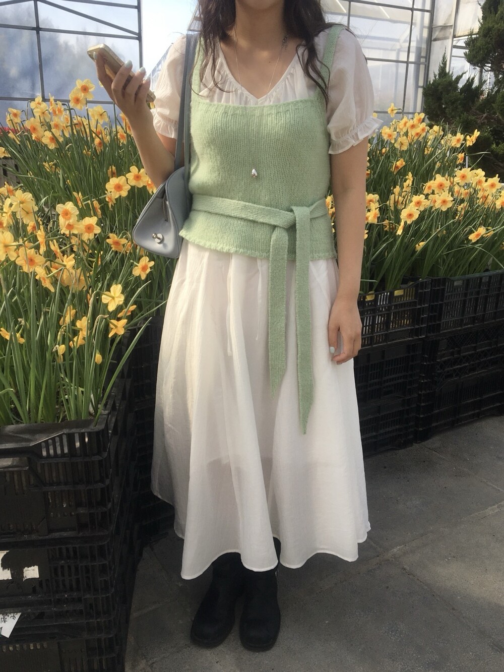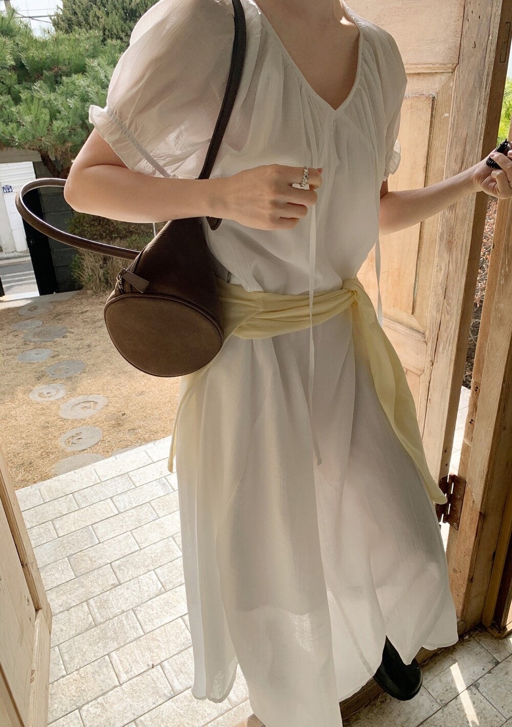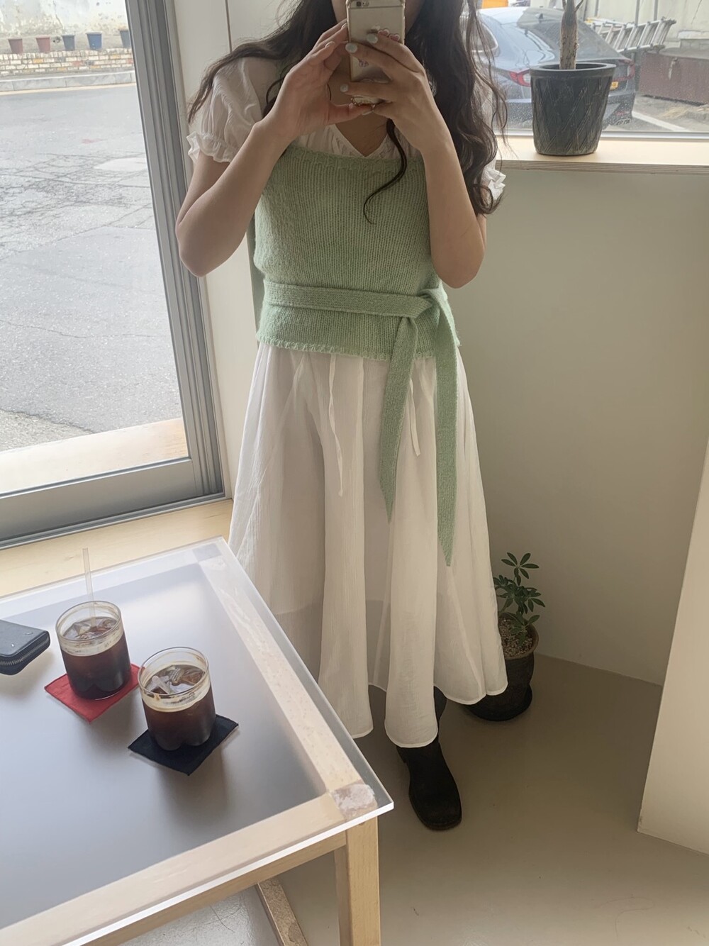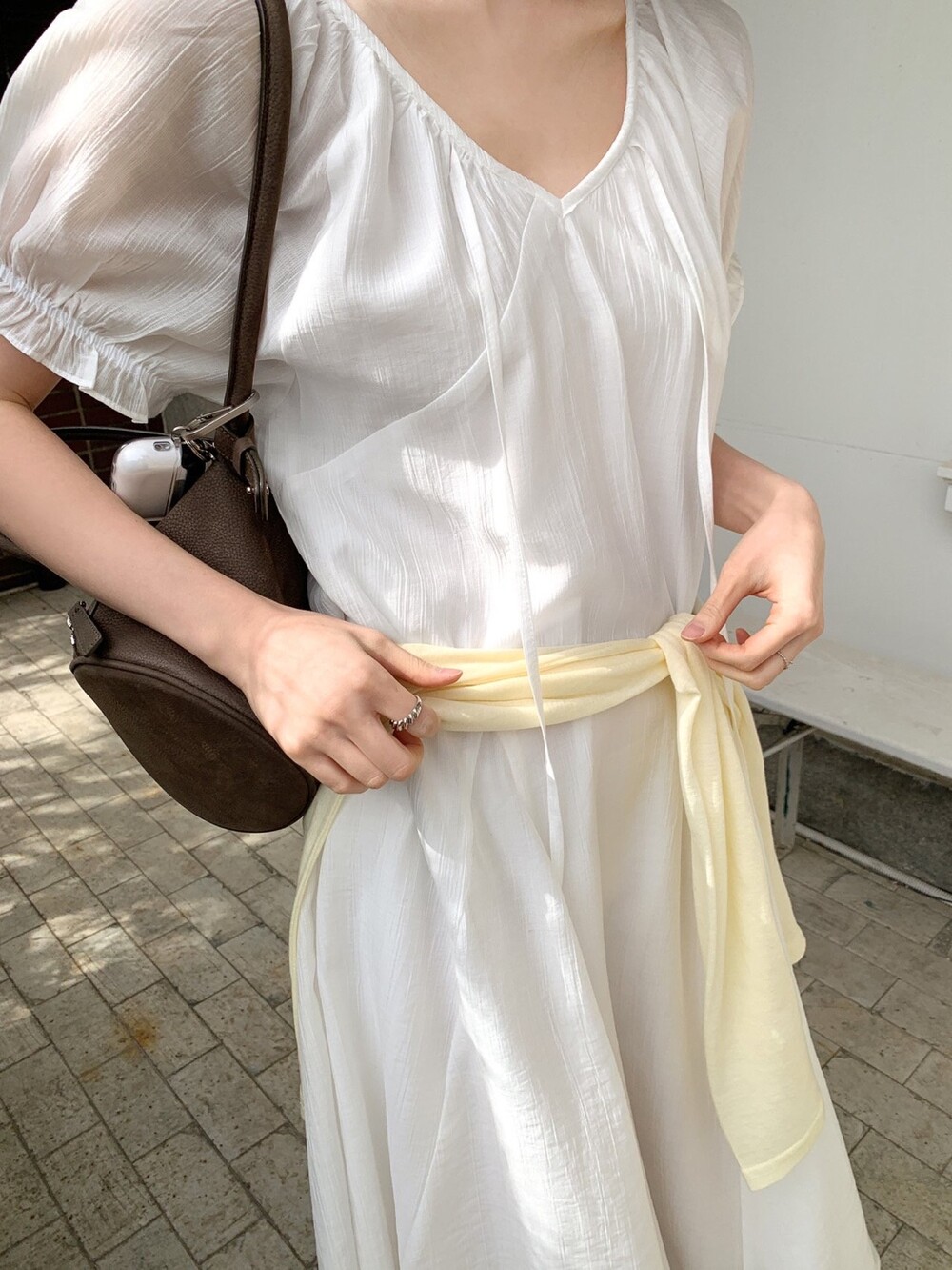 가볍고 부드러운 소재감으로 여리한 분위기를 완성해주는 아이템이에요 :)