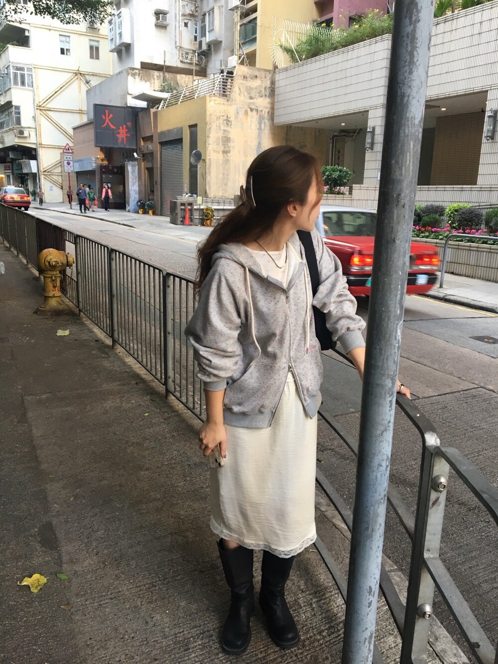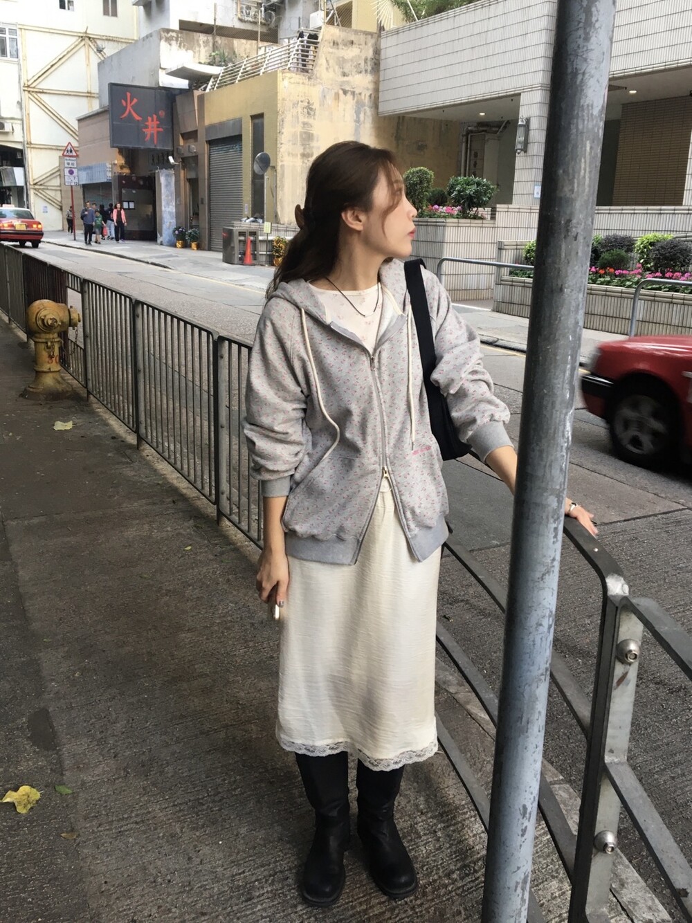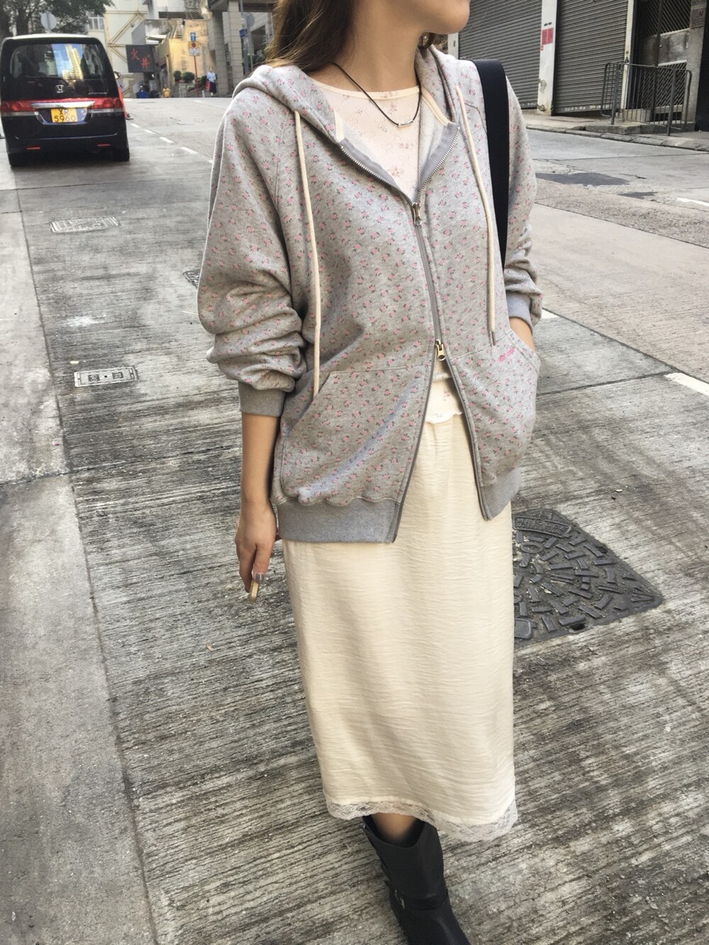 부드러운 코튼 혼방 원단으로 포근하게 감싸주는 착용감이며, 여유 있는 핏으로 체형 구애 없이 편안하게 착용됩니다. 자연스럽게 떨어지는 드롭 숄더 라인이며, 실용적인 양 사이드 포켓이 있어요. 귀엽고 사랑스러운 잔꽃 패턴과 자수 포인트로 밋밋하지 않은 포인트를 더해줍니다.