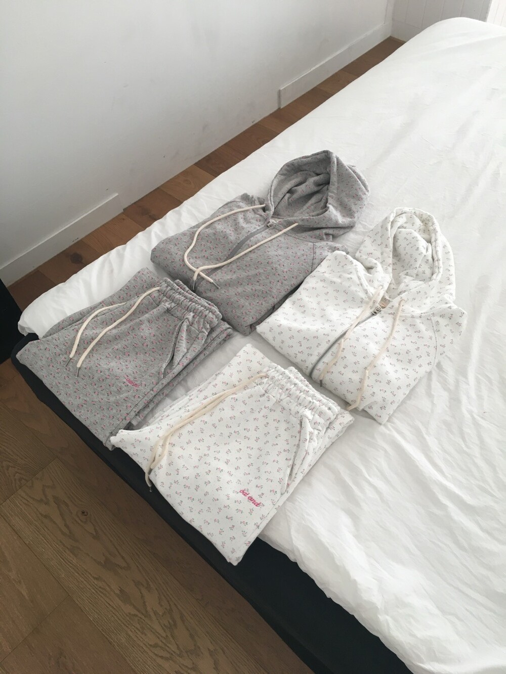 잔잔한 잔꽃 패턴이 포인트가 되는 편안함과 사랑스러움을 동시에 담은 오트앤드 메이드 데일리 트레이닝 세트 소개해드려요!