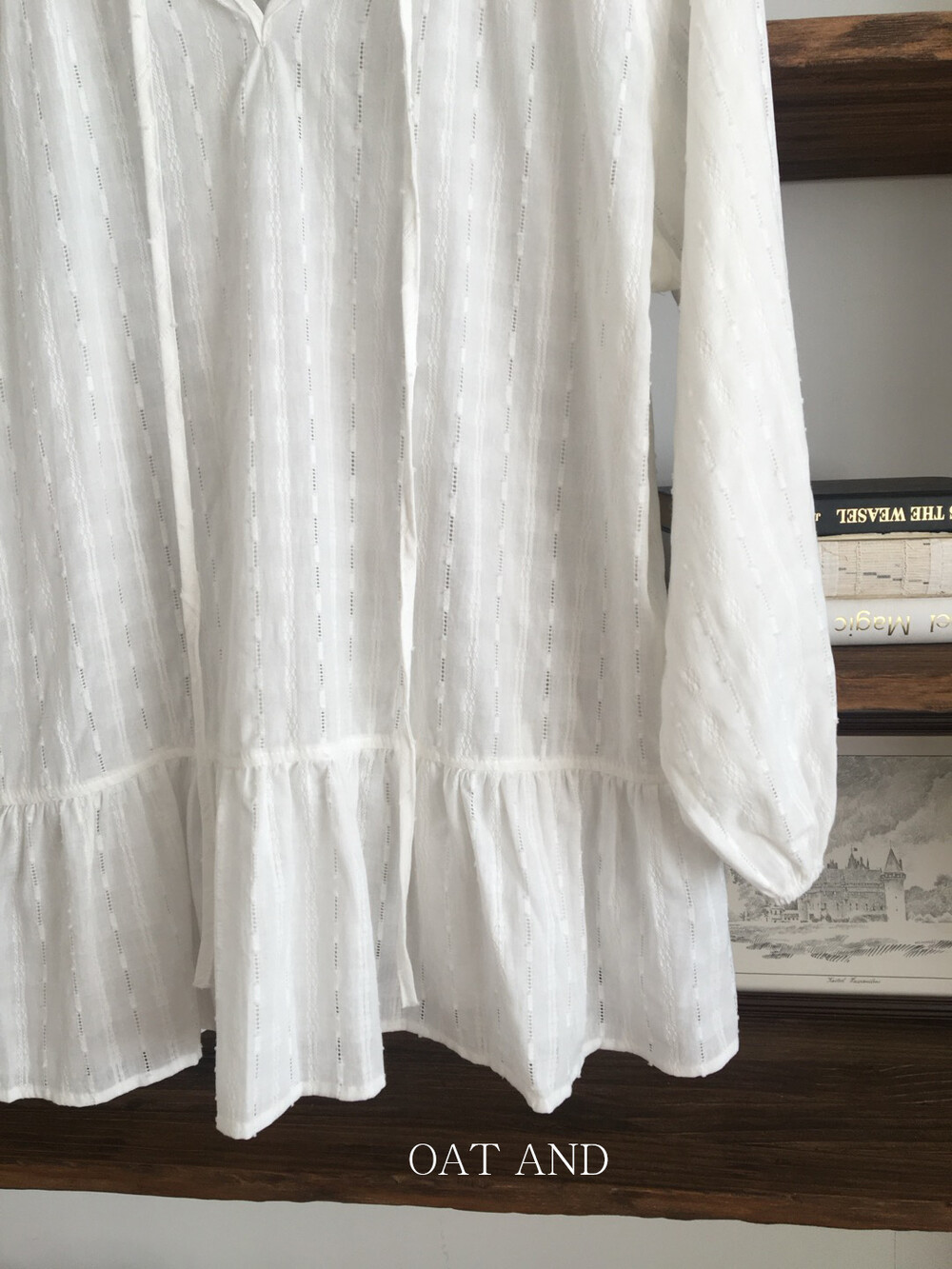 세로 라인으로 들어간 자수로 펀칭 디테일이 포인트 애플 블라우스 소개드려요 :)